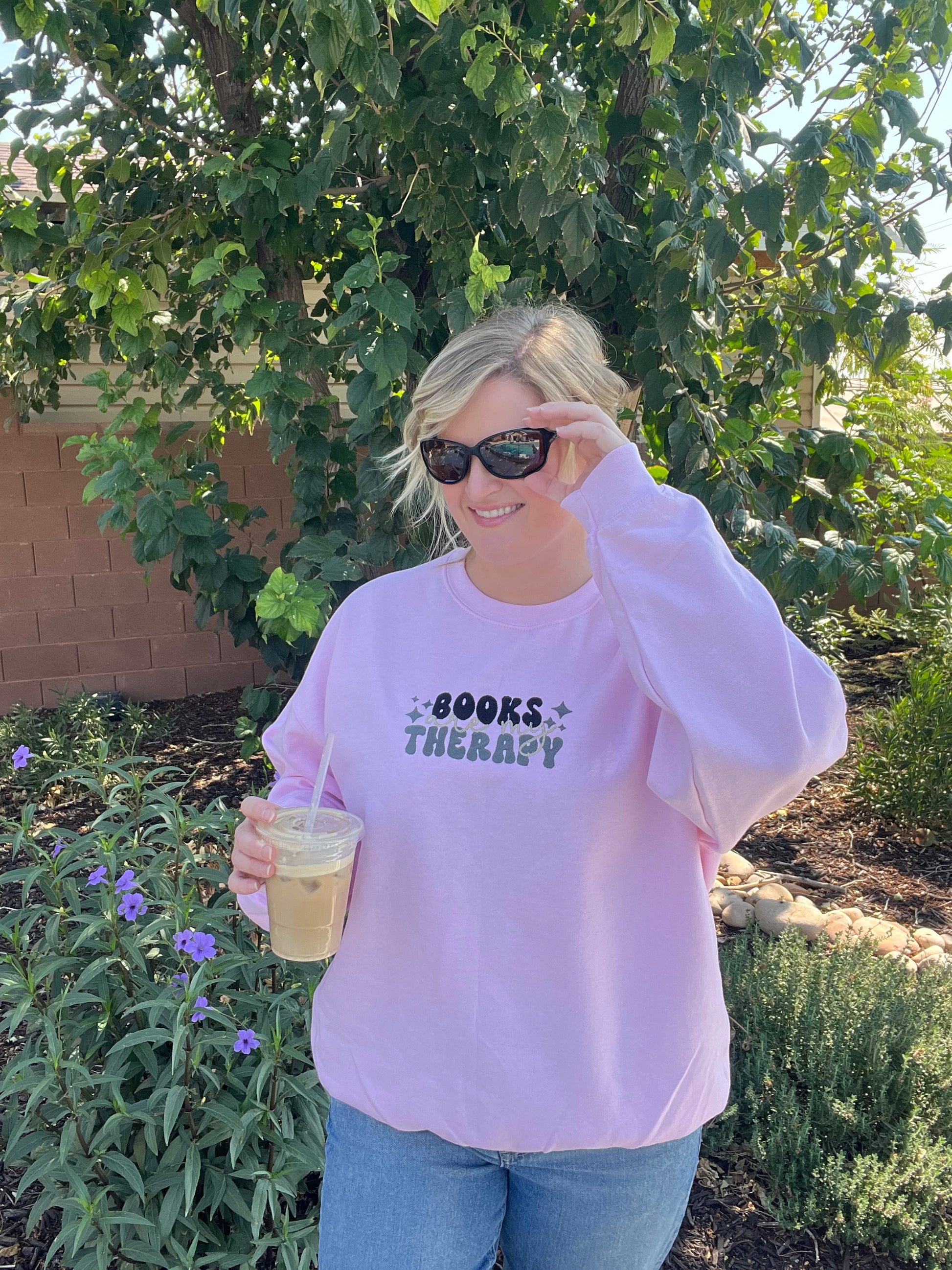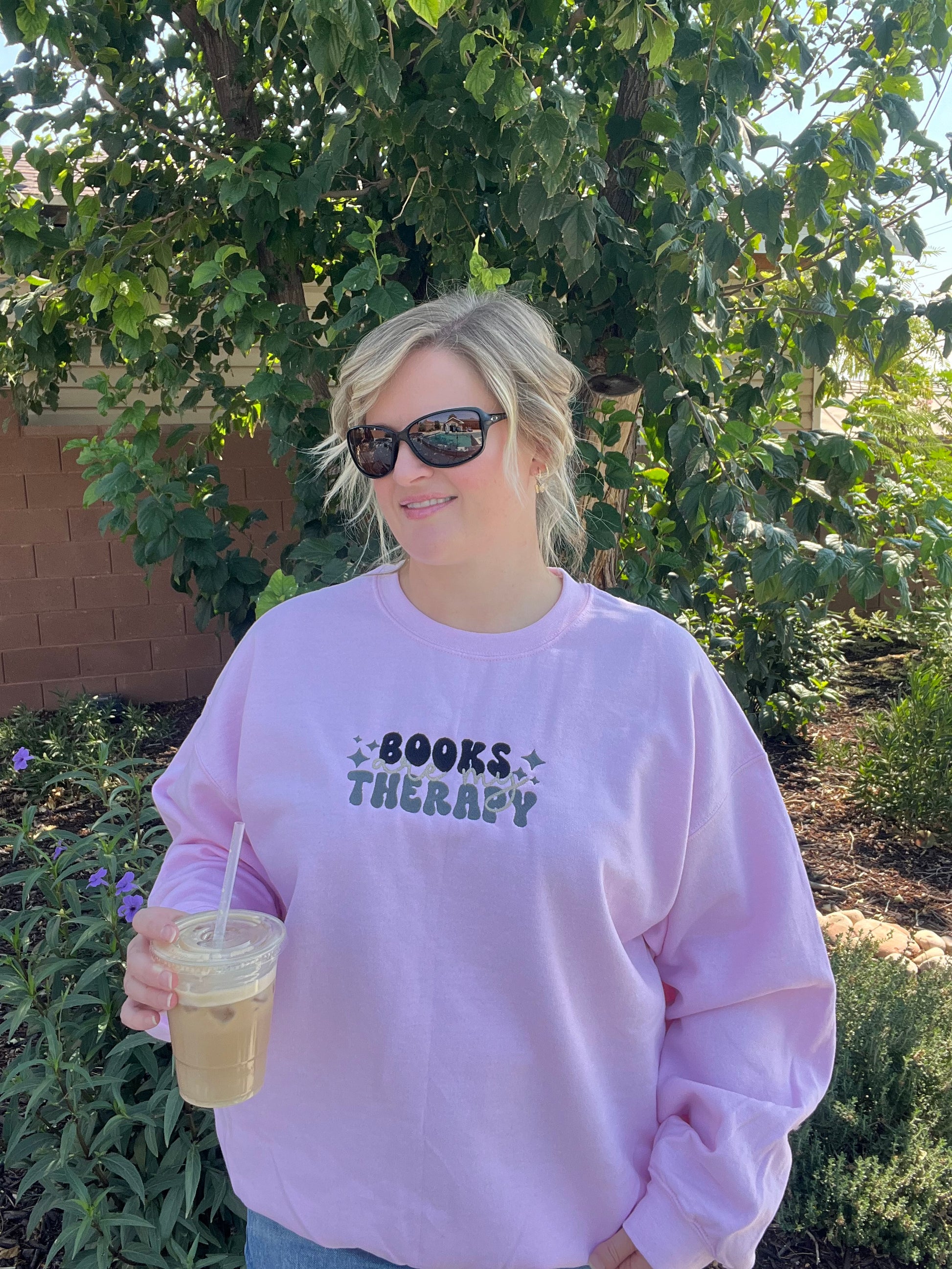 Unwind in our cozy, books are my therapy crewneck sweatshirt. Its soft fabric will keep you comfortable and relaxed while you catch up on your reading. Perfect for anyone in need of a little bit of "therapy", this sweatshirt is the ultimate in comfort and style.